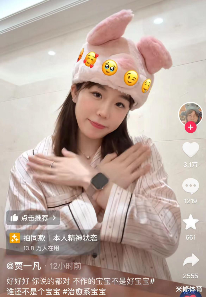 4月8日,贾一凡发布了一段手势舞的视频,配文是:“好好好,你说的都对,不作的宝宝不是好宝宝。”球迷们纷纷盛赞贾一凡霸气的“女王行为”。